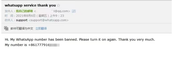 收件箱:support@support.whatsapp.com